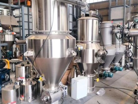 当压缩空气供给真空发生器时,真空发生器就产生负压形成真空气流,物料被吸入吸料咀,形成物气流,经过吸料管到达上料机的料仓内。过滤器把物料与空气彻底分离,当物料装满料仓时,控制器会自动切断气源,真空发生器停止工作,同时料仓门自动开启,物料落到设备的料斗中。